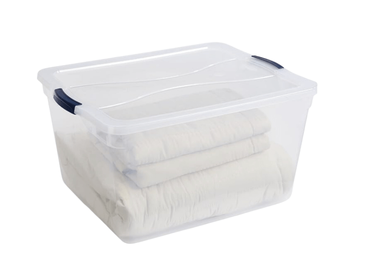 These Rubbermaid Storage Containers were a game-changer at the start of my decluttering journey. With a plethora of items from my old classroom to sort and dispose of and limited space, these spacious and stackable containers made the process a breeze. The fact that they are see-through also meant that labeling was unnecessary, adding to the convenience.